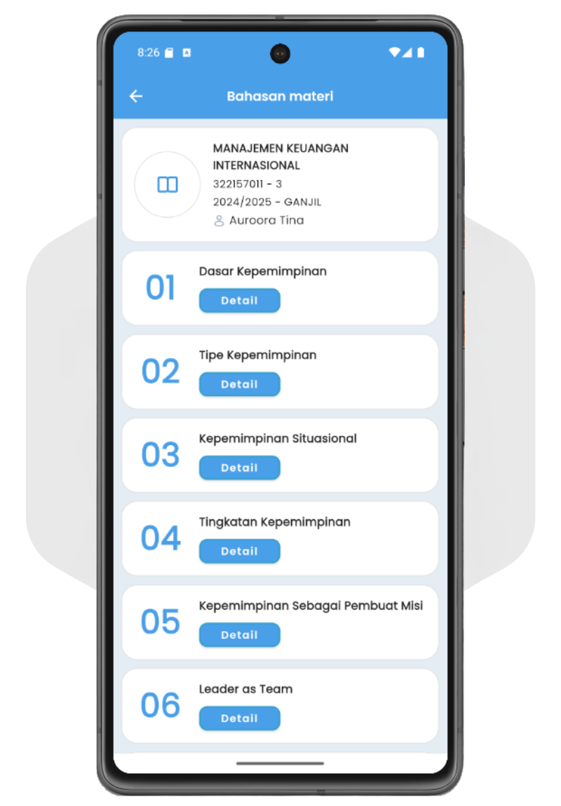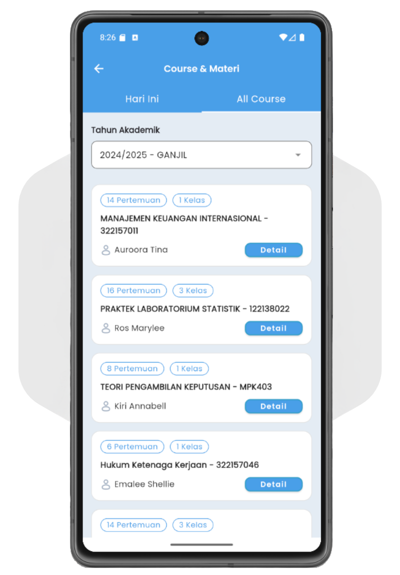 Otomasi data course LMS dan audience kelas kampus anda berdasarkan data KRS / Studi Mahasiswa, mempermudah pengelolaan data dan MEMPERSINGKAT WAKTU. Rekap nilai ujian dan tugas pada LMS ke modul Akademik mudah dengan 1x klik, tidak perlu GANTI APLIKASI ataupun import nilai via excell manual.